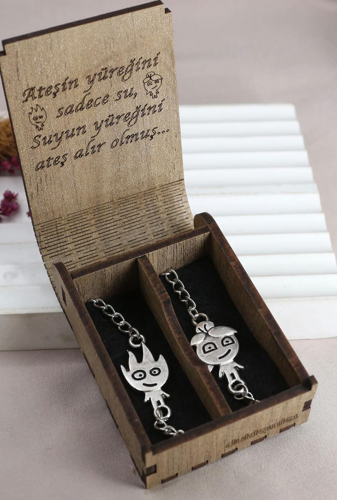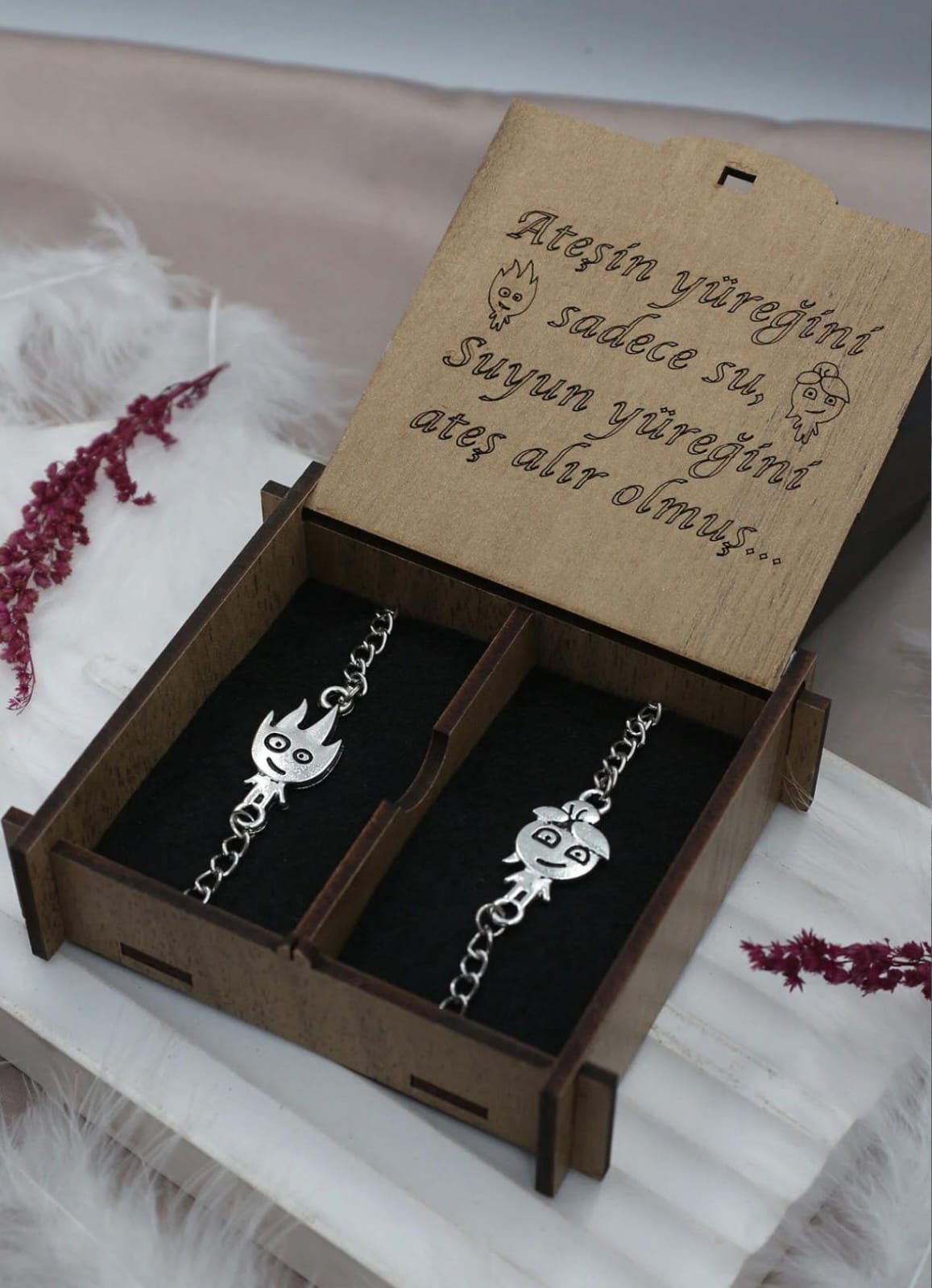 Ateş ve su gümüş renkli çift sevgili bileklik, romantik anılarınızı simgeleyen özel bir aksesuar seçeneği sunar