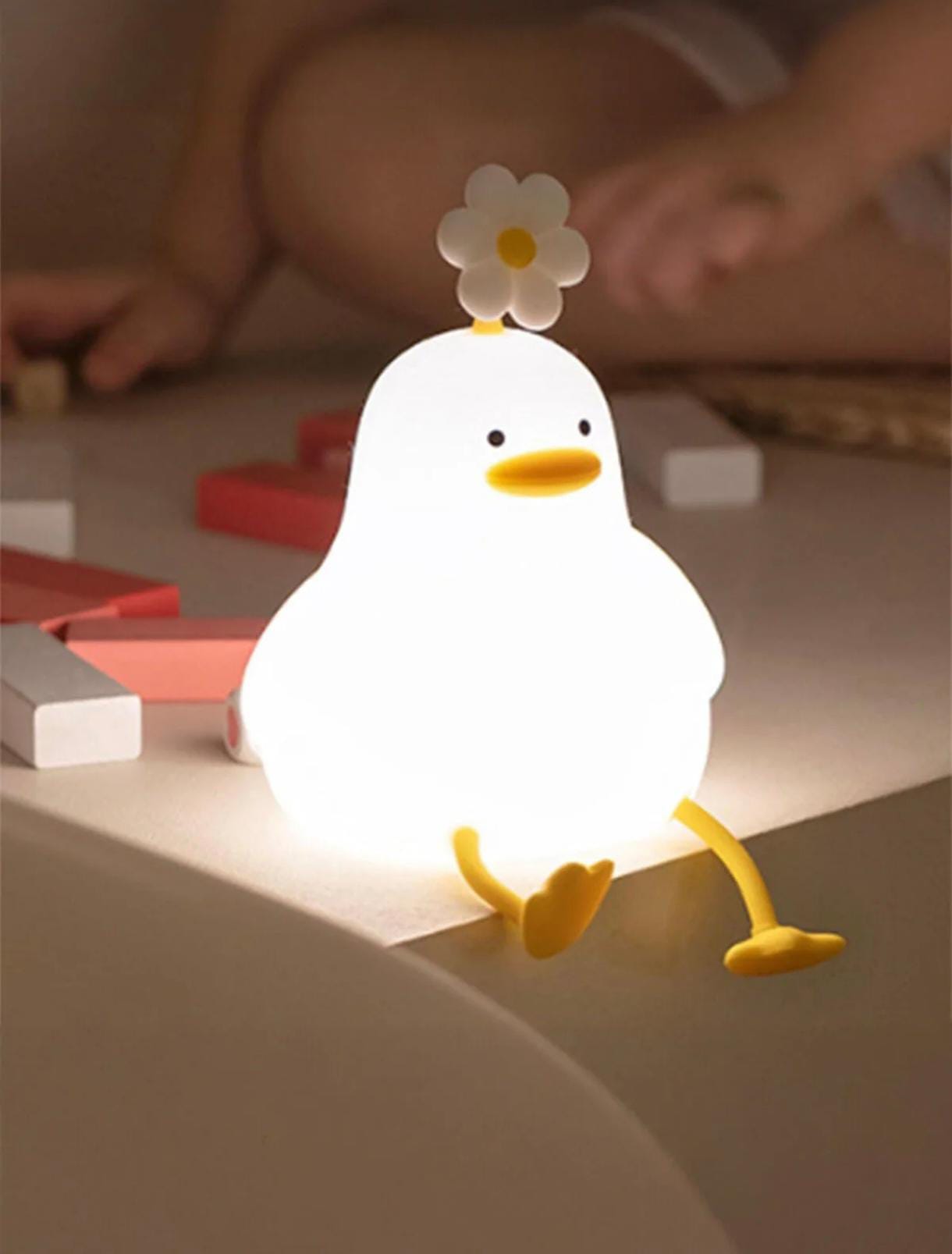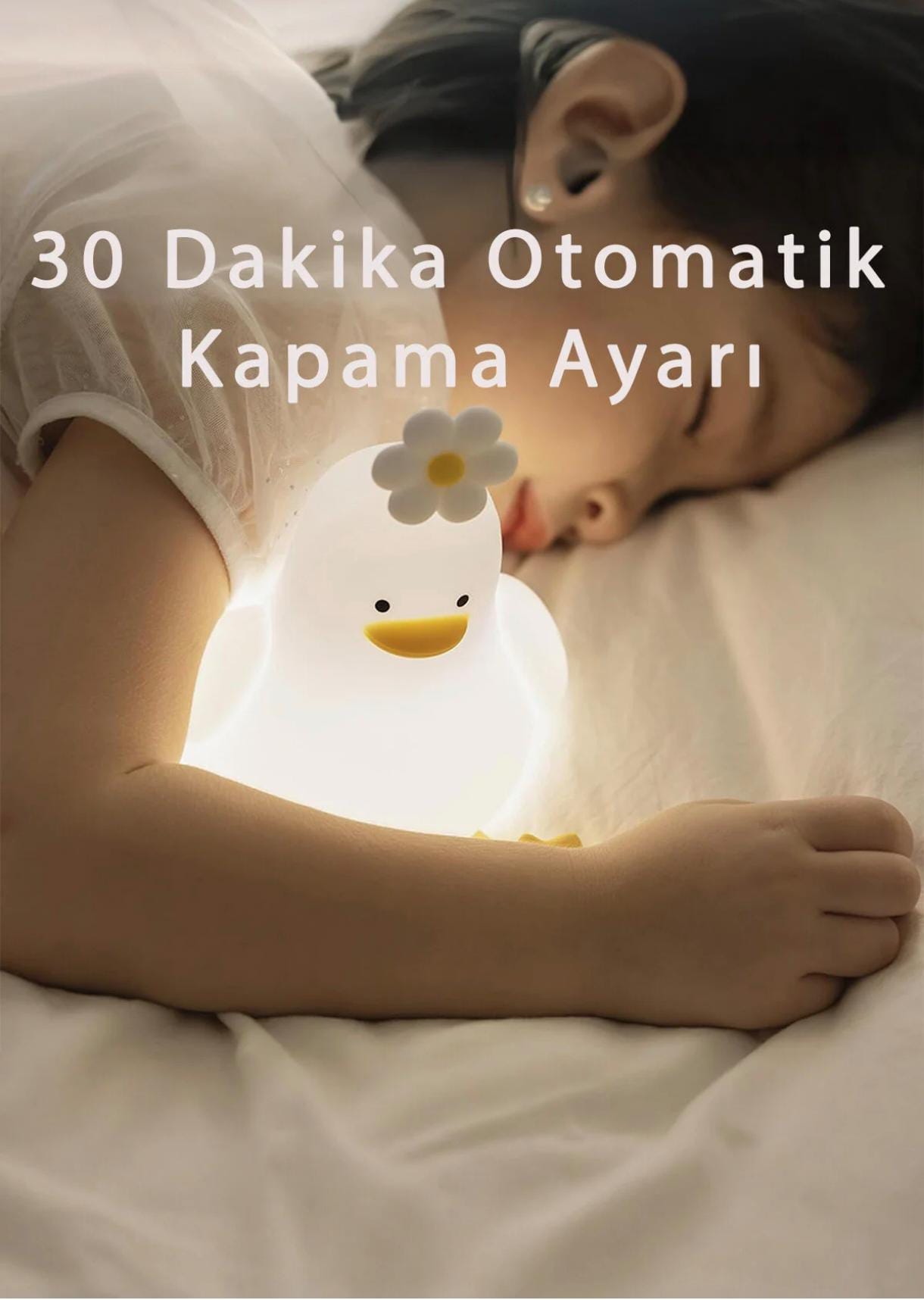 - ördek figürlü gece lambası, bebek ve çocuk odası için özel olarak tasarlanmış sevimli ve işlevsel bir aydınlatma ürünü. Yumuşak, BPA içermeyen silikon gövde sayesinde güvenlidir; çocuklar dokunsa dahi zarar vermez, hatta oyuncak gibi sarılabilir. Esnek yapısı darbelere dayanıklıdır.