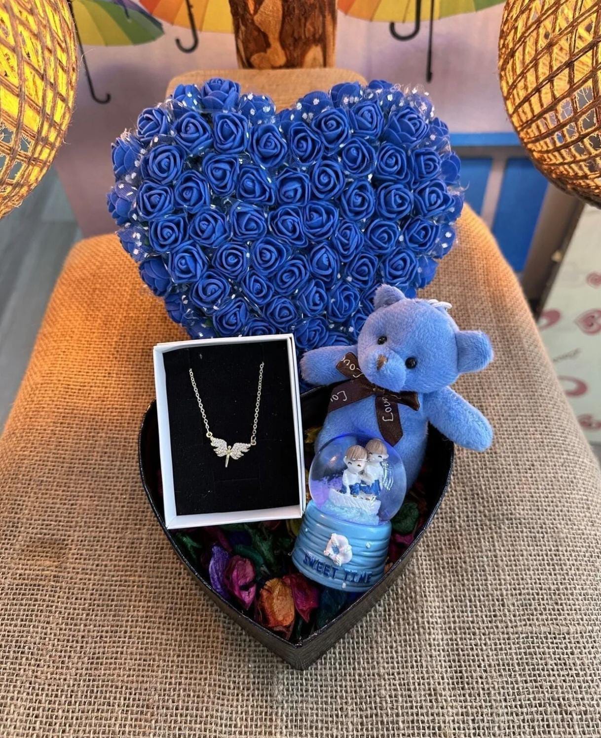 25-30 adet yapay gül 1 adet zirkon kolye 1 adet ışıklı kar küresi 1 adet peluş anahtarlık 1 adet hediye kutusu Ürün görsellerdeki ile birebir aynı gönderilmektedir